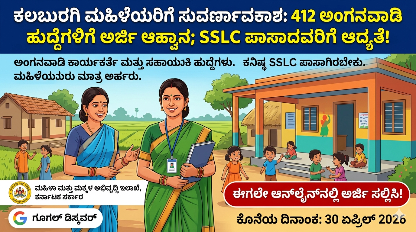 Kalaburagi Anganwadi Jobs 2026: 412 ಹುದ್ದೆಗಳ ಸಂಪೂರ್ಣ ಮಾರ್ಗದರ್ಶಿ ಮತ್ತು ಅರ್ಜಿ ಸಲ್ಲಿಕೆ ವಿಧಾನ |