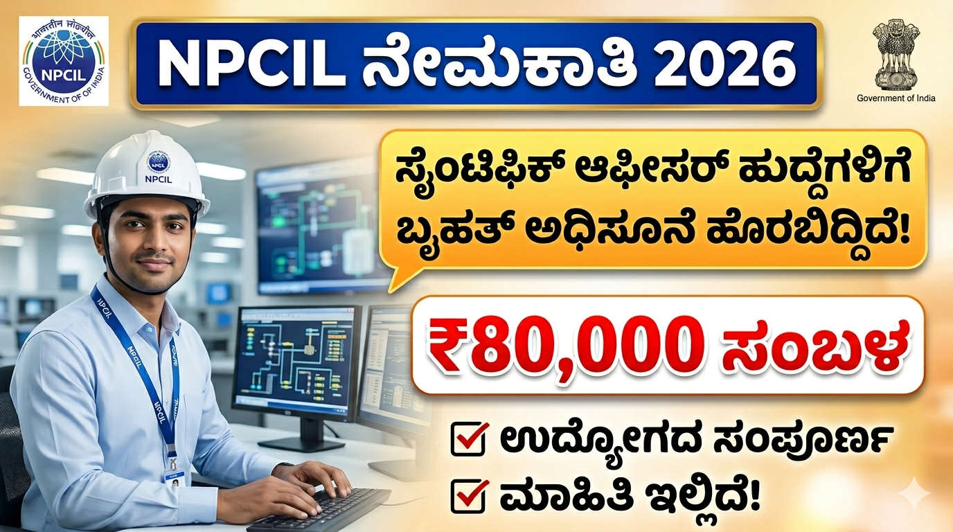 NPCIL Recruitment 2026: ಸೈಂಟಿಫಿಕ್ ಆಫೀಸರ್ ಹುದ್ದೆಗಳಿಗೆ ಬೃಹತ್ ಅಧಿಸೂಚನೆ ಹೊರಬಿದ್ದಿದೆ; ₹80,000 ಸಂಬಳ ಮತ್ತು ಉದ್ಯೋಗದ ಸಂಪೂರ್ಣ ಮಾಹಿತಿ ಇಲ್ಲಿದೆ!